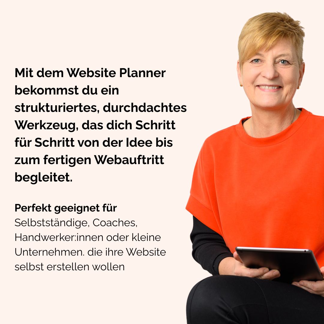 Für Selbstständige, Coaches, Handwerker:innen oder kleine Unternehmen, die mit Struktur und Strategie eine Website bauen wollen — mit klarer Struktur statt Chaos.